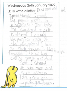 Year 3 has been trying really hard to improve their writing. This week, they wrote letters to Year 2 explaining how they have tried to encourage the Tear Thief. They are really enjoying this book and this comes across in their excellent writing. Well done Year 3!